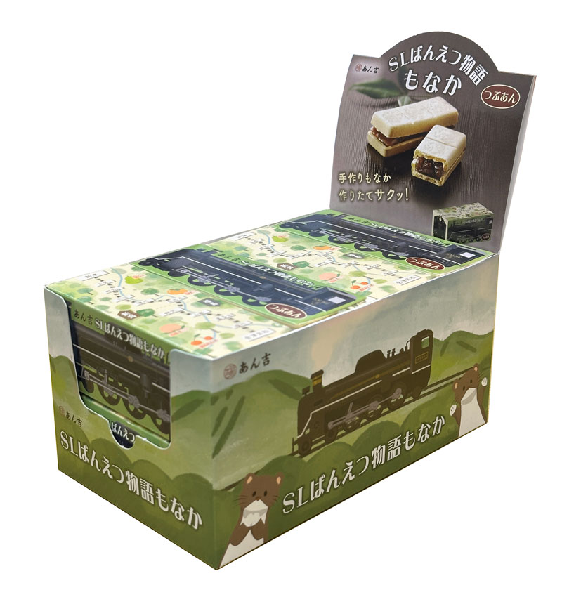 あん吉オリジナルのコラボスイーツ『SLばんえつ物語もなか』。